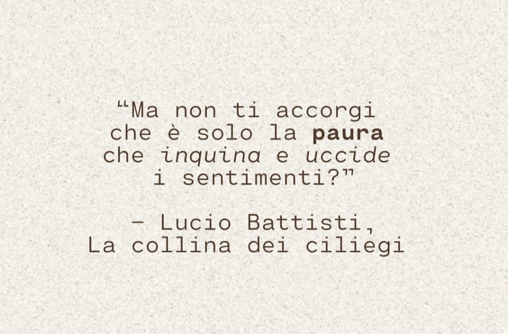 “Ma non ti accorgi che è solo la paura che inquina e uccide i sentimenti” recitava Lucio Battisti ne la collina dei ciliegi oppure ” purtroppo si odia chi troppo amore ci dà ” Fabrizio Moro in libero… ce ne sono tanti di testi, poesie o quel che volete a confermare quanto faccia paura l’amore.