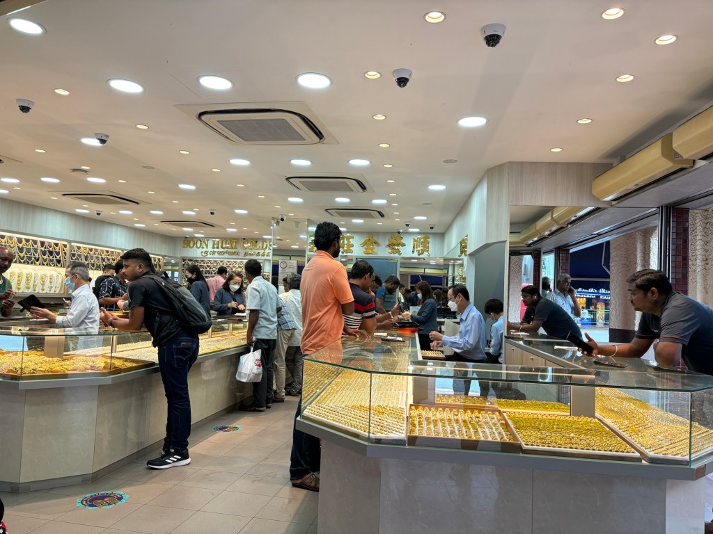 Camminando per la città, attraversandola a piedi tra vicoli con murales che richiamano la quotidianità del posto, la religione e personaggi tipici dei cartoni animati ma anche in treno noto però non solo di quanto controllo ci sia con telecamere ad ogni lampione, corridoio di stazione e chi più ne ha più ne metta, cosa che rende tutto un verosimile Truman show, ma anche di quanto le persone siano individualizzate a tal punto da non notare nemmeno l’esistenza degli altri. Sebbene infatti all’occorrenza tutti si dimostrano disponibili non ho visto una persona che non stia con lo sguardo basso sul proprio telefono distratto da un gioco, da un video o dalle più disparate immagini proiettate dai propri dispositivi. Molto meno vale per l’etnia indiana anche se di loro ho fatto caso che praticamente 9 su 10 portano gli occhiali e che frequentano più i negozi di oro che i caffè (chissà perché?). Questo essere presi dai schermi pensavo fosse un problema in occidente avendone avuto prova anche sul volo che mi ha portato qui, vedendo la moltitudine delle persone passare il completo volo guardando film o giocando a diversi giochi sui schermi del sedile, ma qui sembra si entri in una patologia vera e propria.